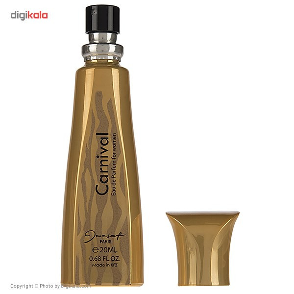 عطرهای جیبی برند ایرانی «ژک ساف» (Jacsaf) همیشه از کیفیت بالایی برخوردار بوده و هستند. یکی از عطرهای جدید این برند با نام «کارناوال» (Carnival) شناخته میشود. ادو پرفیوم کارناوال برای بانوان ساخته شده است. این عطر حجمی برابر با 20 میلیلیتر دارد و تا مدت کوتاهی عطر شماره یک شما خواهد بود. با توجه به غلظت مناسب این عطر به این زودیها شاهد خالی شدن بطری آن نخواهید بود. Carnival بوی تند، شیرین و گرمی دارد و برای استفاده در تمامی فصول سال بهویژه پاییز و زمستان پیشنهاد میشود. بطری Carnival بسیار جذاب و زیبا طراحی شده است. بطری به رنگ طلایی است و بهخوبی در دست جا میشود. روی بطری نام کارناوال و نشان تجاری ژک ساف با رنگ مشکی دیده میشود. طرح طلاییرنگی که روی بطری کار شده آن را زیباتر کرده است. پس از اسپری کردن Carnival روی پوست و محل نبضتان بوی گل و چوب در فضای اطراف پخش میشود. این عناصر گرم و شیرین تازگی و انرژی ویژهای را به شما و اطرافیانتان منتقل میکنند. خرید عطر ژک ساف Carnival با توجه به پخش بوی قوی، ماندگاری بالا، حجم 20 میلیلیتری و قیمت نهچندان بالایش برای شما و کسی که این عطر را از شما هدیه میگیرد بسیار خوشحالکننده به نظر میرسد.