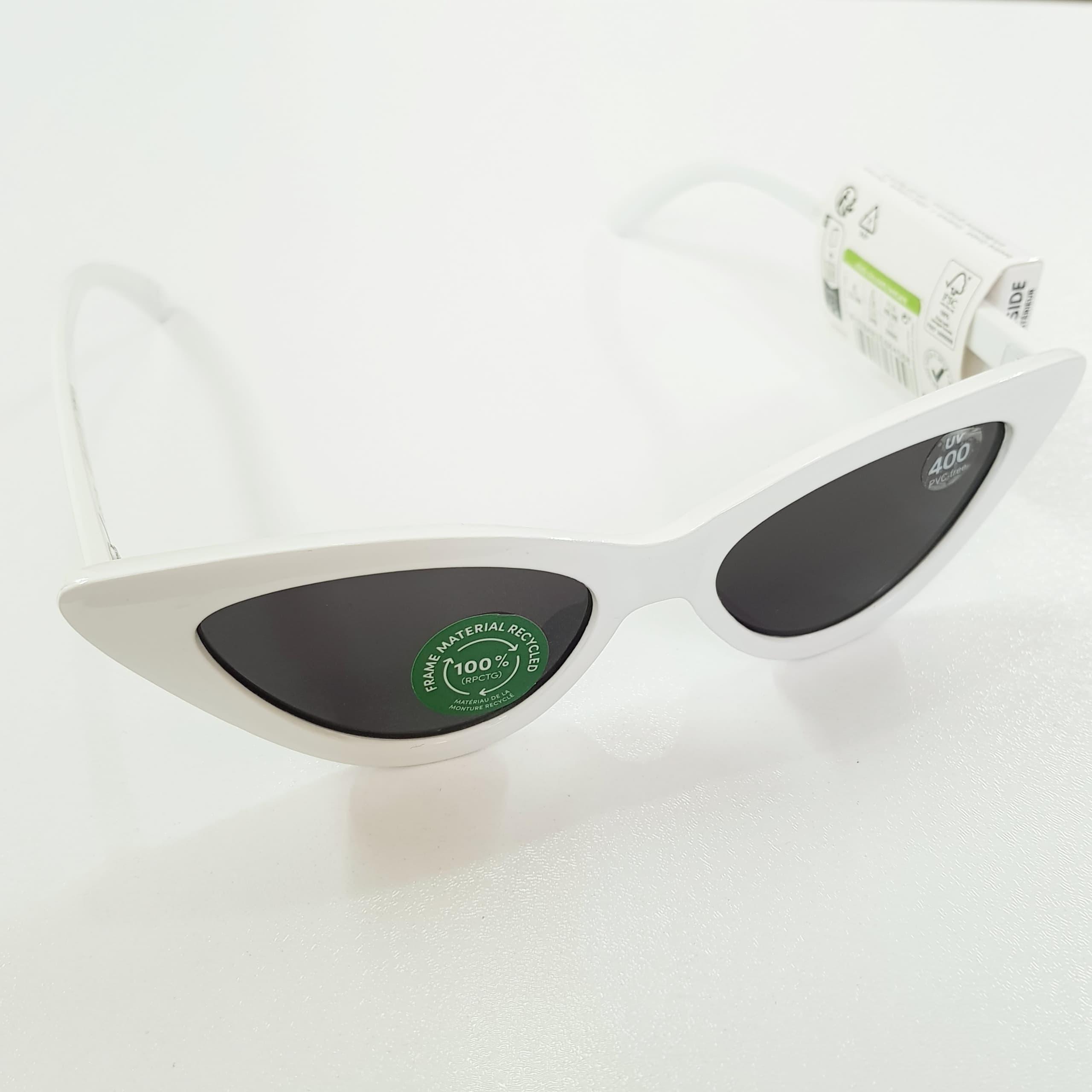 عینک آفتابی مدل گربه ای فریم سفید ، لنز UV400 پلی کربنات مقاوم + کیف پارچه ای ، کیفیت فوق العاده عالی لنزها و فرِیم ، کاملا سازگار با چشم های حساس ، شناسنامه و بارکد دار ، بهمراه کیف پارچه ای