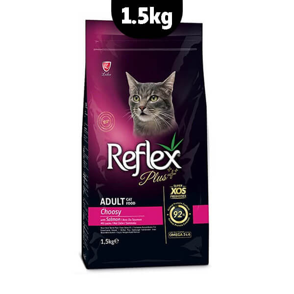 غذای خشک گربه رفلکس پلاس چوسی با طعم سالمون یک غذای گربه درجه یک برای تمام نژادهای بالغی است که به ویژه حساس و بداخلاق هستند. بسیار خوش طعم با پروتئین و روغن ماهی قزل آلا.