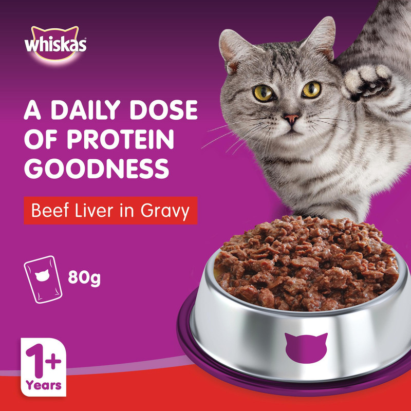 پوچ گربه ویسکاس حاوی 80 ٪ گوشت گاو مخلوط در سس گوشت که برای گربه های بالای از یک سال مناسب می باشد. پوچ گربه ویسکاس به دلیل دارا بودن تورین ، موادمعدنی و ویتامین جهت حفظ شادابی و سلامت پوست و موی گربه و همین طور تقویت دستگاه ایمنی گربه ها موثر است.