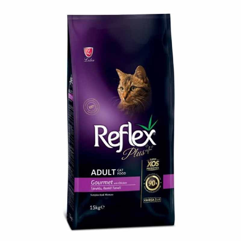 مدل گورمت مرغ همانطور که از نامش پیداست به معنی لذید و خوش خوراک میباشد، برند رفلکس ساخت کشور ترکیه میباشد و از نظر ارزش غذایی به دو بخش رفلکس ساده و رفلکس پلاس تقسیم میشود رفلکس پلاس با کیفیت سوپر پریمیوم از ارزش غذایی بالاتری از رفلکس پریمیوم برخوردار است درصد پروتئین به کار رفته در مدل های رفلکس پلاس بالاتر از رفلکس پریمیوم میباشد مدل گورمت مرغ مخصوص گربه های بالغ بدغذایی میباشد که ذائقه مرغ دارند و طعم مرغ را به ماهی ترجیح میدهند نود درصد گربه های بدغذا دست رد به سینه ی این غذا نمیزنند. اگر هر غذا خشکی که امتحان کردید ولی باز هم توجه گربه اتان را جلب نکرد حتما یک بار گورمت را امتحان کنید.