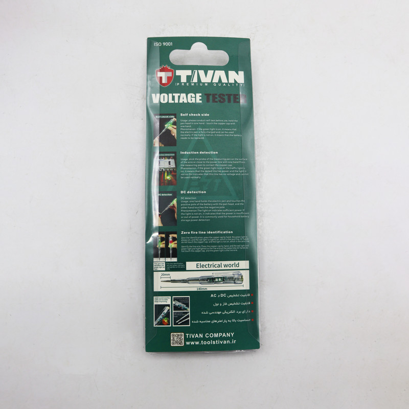 سایر توضیحات- فاز متر فشار قوی تیوان - قابلیت تشخیص AC و DC - قابلیت تشخیص فاز و نول - دارای برد الکتریکی مهندسی شده - حساسیت بالا به پارامتر های محاسبه شده - ابعاد ; 14*2*2 سانتی متر - کیفیت بالا