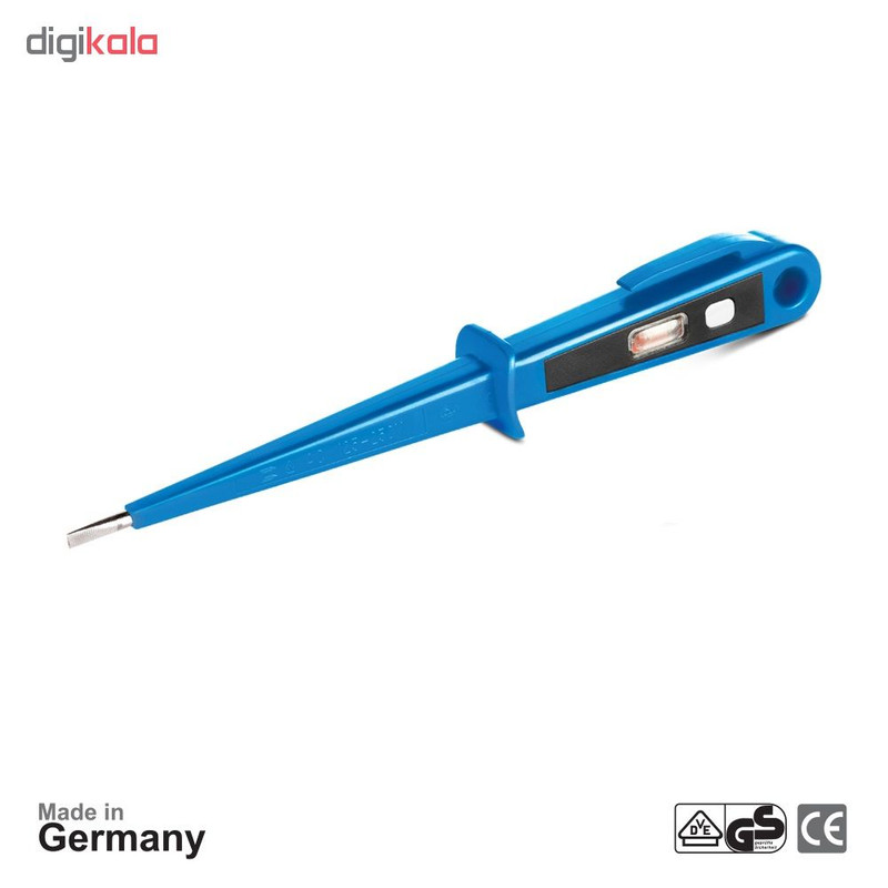 فازمتر «نووا» مدل NTT-1014 یکی از ابزارهای شرکت نووا (Nova) است که از طراحی زیبا و استانداردی برخوردار است. در میان ابزارآلات هر صنعتی، برخی از ابزارها نه تنها از ابزارهای ضروری به شمار میروند بلکه برای آنها جایگزینی نمیتوان یافت. ابزار فازمتر برای خیلی از افراد، بویژه آن دسته که به نوعی با جریان برق سروکار دارند یکی از این ابزارهای ضروری محسوب میشود. این ابزار نه تنها به منظور تست و اطمینان از وجود جریان برق در یک مدار یا مسیر کاربرد دارد، بلکه در ایمنی کار با جریان یا دستگاههای برقی نیز کاربرد فراوانی دارد. فازمتر «نووا» مدل NTT-1014 با سری پیچگوشتی دو سو و بدنه پلاستیکی تولید شده است که قابلیت تست گستره مناسبی از جریان برق را دارد. تیغه کاملا پوشیده شده طبق استاندارد VDE و همچنین برخورداری از میله با نوک سخت کاری شده از دیگر مشخصات این پیچگوشتی فازمتر است. با توجه به سایز و طول مناسب، کاربر همواره به راحتی میتواند آن را در میان دیگر ابزارهای خود به همراه داشته باشد. این مدل همچنین دارای استاندارد GS آلمان است که نشان از ایمنی محصول دارد. این ابزار یکی از محصولات عرضهشده توسط شرکت نووا و ساخت کشور آلمان است که ضمن همکاری با کارخانجات تولیدی خارجی به تولید و عرضه ابزارآلات متنوع و استاندارد میپردازد.