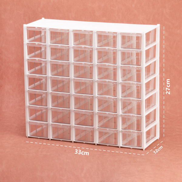 کشویی کریستالی (یا ارگانایزر) 35 کشو 7 طبقه مناسب نگهداری لوازم در فروشگاه ها، دفاتر اداری، آزمایشگاهها و انبارها، کارگاه، دفتر، تعمیرگاه و یا حتی منازل کاربرد دارد. در هر یک از طبقات 5 کشو شفاف دارد، بوسیله این کشوهای شفاف میتوانید به راحتی اجناس داخل آن را دیده و به جنس مورد نظر خود به سادگی دسترسی پیدا کنید. از این محصول برای نگهداری و تفکیک قطعاتی از قبیل میخ، پیچ، کلید، دکمه، سوزن و هزاران قطعه کوچک دیگراستفاده می شود. با استفاده از این محصول مشکل بی نظمی و گم شدن قطعات حین کار برطرف شده و موجب ایجاد نظم و ترتیب به دلخواه شما می شود.