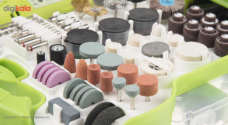| سایر توضیحات | - ولتاژ: 230 ولت - فرکانس: 50/60 Hz - دارای 172 قلم ابزار مجزا جهت سوراخکاری، صیقل و ساب - ابعاد بستهبندی: 26.5 × 6 × 31.5 سانتیمتر |