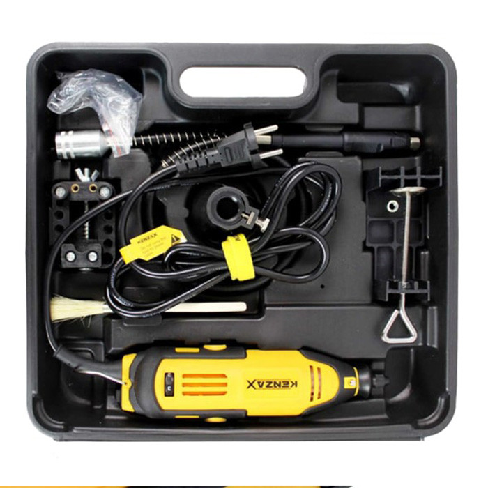 دستگاه های مرغوب تولید شده در کشور چین از برند KENZAX فرز مینیاتوری استفاده برای کار روی چوب، فلز، شیشه و... مجهز به کولت با ظرفیت 3.2 میلی متر و دارای قفل تجهیز شده به موتور نیرومند 180 وات با فرکانس 50 هرتز قابلیت تنظیم سرعت حرکت به کمک کلید دیمر 35000 - 15000 دور در یک دقیقه میزان سرعت چرخش و تهویه اتوماتیک هوا به لطف شیار های روی بدنه طراحی ارگونومیک بدنه با روکش سیلیکونی ضد لغزش .
