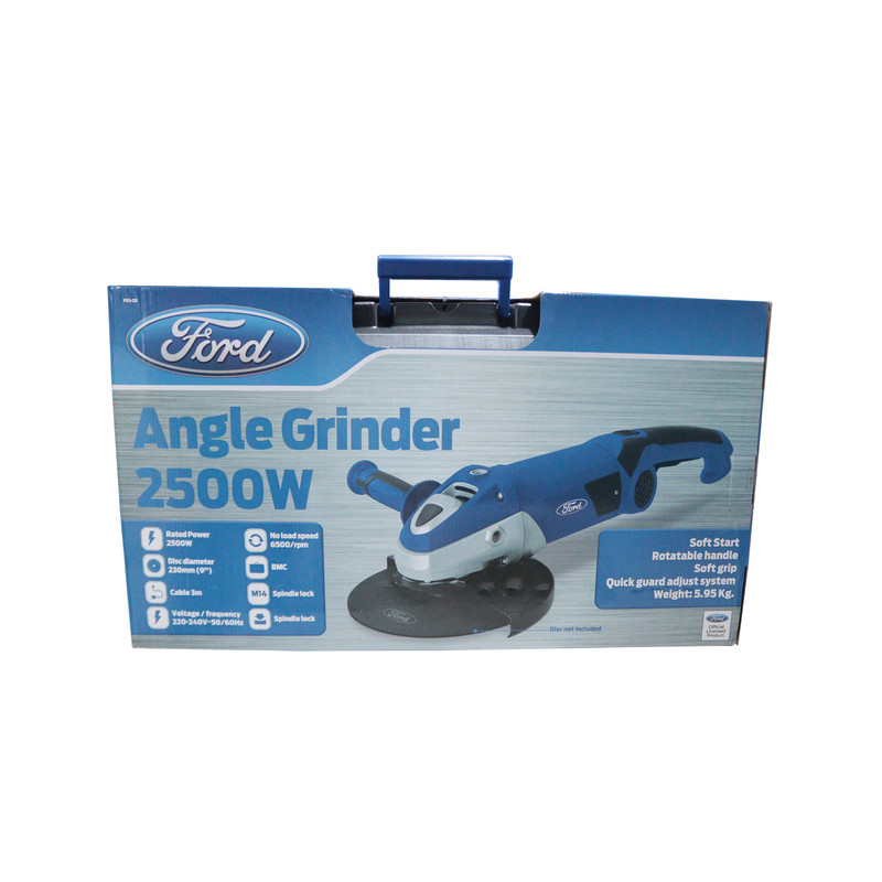 | سایر توضیحات | - فرز سنگ بری فورد - قدرت موتور : 2500 وات - سرعت حرکت آزاد : 6500 دور بر دقیقه - دارای کابل 3 متری - اندازه سوراخ اتصال : M14 - برای کار با صفحات برش با قطر 230 میلیمتر طراحی شده است. - دسته جانبی ضد لرزش طراحی شده - دارای کیف پلاستیک مقاوم |