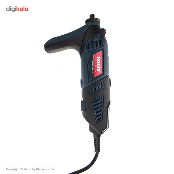 این محصول، یک فرز مینیاتوری به همراه مجموعهی کاملی از ابزار و وسایلی است که برای انجام کارهای مختلف، مورداستفاده قرار میگیرد. این دستگاه که با عنوان 3401 معرفیشده، توسط شرکت «رونیکس» (Ronix) تولید میشود. این دستگاه به یک موتور، با قدرت مناسب مجهز است که میتوان سرعت گردش آن را بهصورت دیجیتالی تنظیم کنید. 3 کولت برای کار در شرایط مختلف برای این محصول در نظر گرفتهشده است. علاوه بر این تعداد زیادی از انواع لوازم جانبی به همراه این ابزار عرضه میشود. فرز مینیاتوری مدل 3401 یک دستگاه چندکاره بهحساب میآید. از این دستگاه غالبا برای انجام کارهایی با دقت و ظرافت بالا استفاده میشود. ازجمله این موارد میتوان به برشهای دقیق فلزات و چوب، دادن طرحهای مختلف در چوب، انواع سوهانکاری و بسیاری موارد دیگر اشاره کرد. این محصول موتوری با قدرت 170 وات دارد. حداکثر سرعت گردش موتور به 35000 دوربردقیقه میرسد. سرعت گردش موتور دستگاه را میتوان به کمک بخش دیجیتالی انتهای دسته بین 8000 تا 35000 دوربردقیقه تنظیم کرد. با توجه به اینکه کاربرد این دستگاه در انجام کارهایی با ظرافت بالا است، میتوان با اتصال یکی از 3 گونهی کولت (سری دستگاه) به محصول، نیاز به در دست گرفتن دستگاه را برطرف کرد. در کنار این محصول 122 عدد لوازم جانبی هم وجود دارد. گونههای مختلف سنگ سنباده و برش، متههایی با قطر بسیار کم، صفحههای سنباده، دو نوع فرچه و انواع پایههای مخصوص دستگاه در بیت این 122 عدد لوازم جانبی دیده میشود. با استفاده از پایههای قرارگرفته در این مجموعه، میتوانید دستگاه را به چند حالت معلق، روی میز و عمودی استفاده کرد.