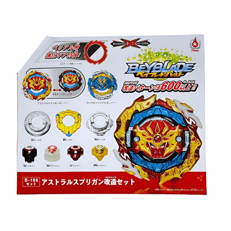 با سوپر استار قرمز فصل شش (Beyblade Burst QuadDrive) یعنی آسترال اسپرایزن آشنا شوید! در همین فصل، با اسپرایزنی نیرومند به نام ورد اسپرایزن همراه شدیم و از مبارزاتش لذت بردیم؛ اما حالا ارتقا یافته تا برای حریفان قدرتمندتر نیز، رقیبی شکستناپذیر باشد! او نهاییترین فرفره شو کرونای است؛ برای همین در نهایت توان و تکنیک ساخته شده و به میدان آمده است تا نامی بزرگ از خود در تاریخ بازیها، به ثبت برساند! در مورد فرفرههای اسپرایزن چه میتوان گفت که قبلا نگفته شده است؟ به لطف سفر متحول کنندهاش از استورم اسپرایزن به افسانه جهانی یعنی آسترال اسپرایزن، او اکنون اعماق دنیای بیبلید را بهتر از هر فرفره دیگری میشناسد و مبارزه میکند.