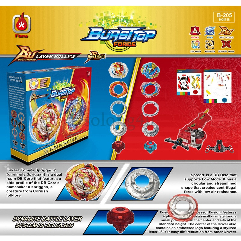 این محصول شامل 2 عدد فرفره انفجاری والتریک و اسپرایزن فصل 7 از برترین تولیدکننده فرفره انفجاری، شرکت Flame میباشد. همچنین این محصول به همراه لانچر تسمه ای شمشیری فصل 7 برای هیجان بیشتر هنگام بازی کردن طراحی شده تا کودکان از بازی با این پک هیجان انگیز لذت ببرند. هر دو فرفره داخل این بسته از نوع تهاجمی و با زیره مشابه انیمیشن میباشند.