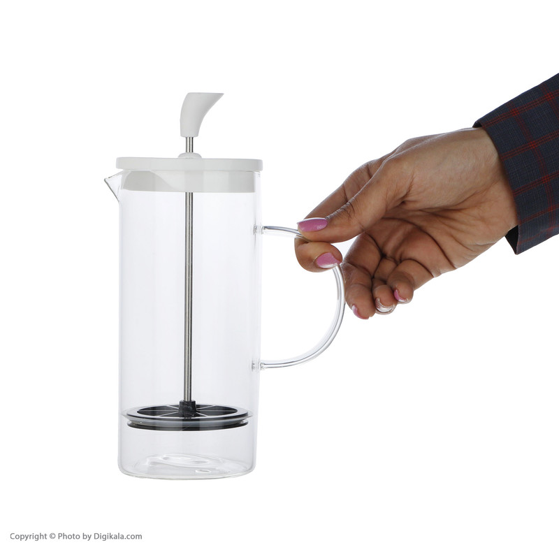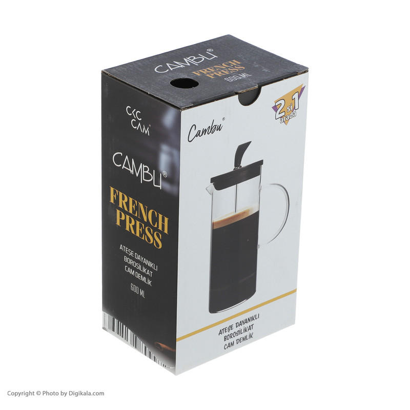قهوه سازهای فرنچ پرس از گذشتههای دور وسیلهای ساده و با سرعت عملکرد بالا جهت آماده کردن یک فنجان قهوهی دم شده بودهاند. برند ترکیه ای CAMBU دارای طیف گستردهای از این نوع قهوه سازها است. دستگاه فرنچ پرس DEMLIK کد 9972 داری طرحی جذاب و چشم نواز بوده و قابلیت آماده سازی تا سه فنجان دمنوش گیاهی یا قهوه را برای شما فراهم میکند.بدنه این فرنچ پرس از بلور بروسیلیکات که بسیار ظریف، شفاف و با کیفیت بوده و در مقابل حرارت از مقاومت بسیار بالایی برخوردار می باشد ساخته شده است و قطر دهانه آن حدود 8 و ارتفاع آن 17 سانتی متر می باشد.درب فوقانی این ظرف از پلاستیک با کیفیت و میله عمودی و فیلتر داخلی این فرنچ پرس از استیل ضد زنگ ساخته شده و با واشر سیلیکونی اطراف آن کاملا فیت با بدنه شیشه ای طراحی شده است که باعث می شود تا کمترین میزان رسوبات درون نوشیدنی صاف شده وارد شود.از این وسیله برای آماده سازی انواع دمنوش و چای گیاهی نیز میتوان استفاده کرد.کافیست مقدار لازم از قهوه یا دمنوش را در قهوه ساز بریزید و به میزان لازم آب جوشیده به آن اضافه کنیددرب را طوری بگذارید که فیلتر روی سطح مایع قرار بگبرد پس از 3 تا 5 دقیقه دسته فیلتر را تا انتها به سمت پایین فشرده و نوشیدنی خود را میل بفرمایید.