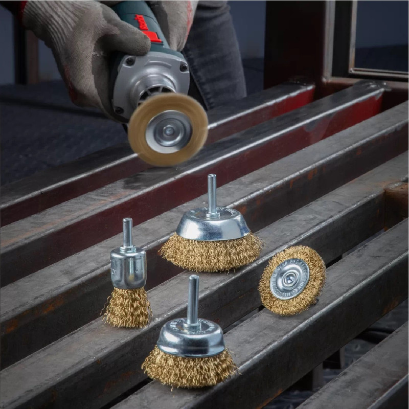 | سایر توضیحات | - دارای سایز های مختلف: خورشیدی 50/75 میلیمتر، کاسه ایی 50/75 میلیمتر، استوانه ایی25 میلیمتر - دارای ضخامت های مختلف برای انواع کاربرد ها - سرعت کاری 4500 دور بر دقیقه - قابلیت استفاده در انواع سطوح نرم و زبر به منظور برداشتن انواع لکه - کثیفی - رنگ - پاشش جوش - زنگ زدگی -مجموعه 5 تکه برس سیمی با درایو شش گوش 1/4 اینچی و سازگار با دریل ها - سیم های استیل با روکش منعطف و مقاوم در برابر حرارت و قابلیت تحمل فشار کاری بالا |