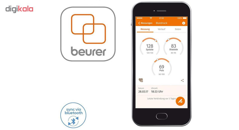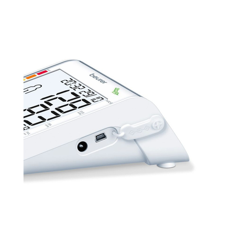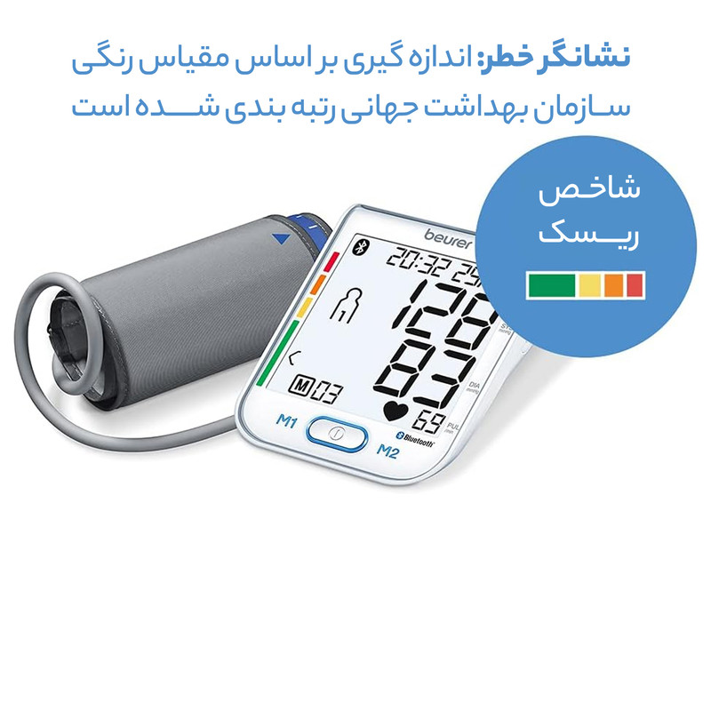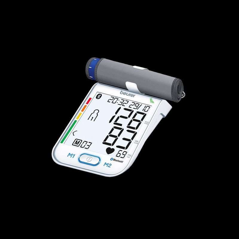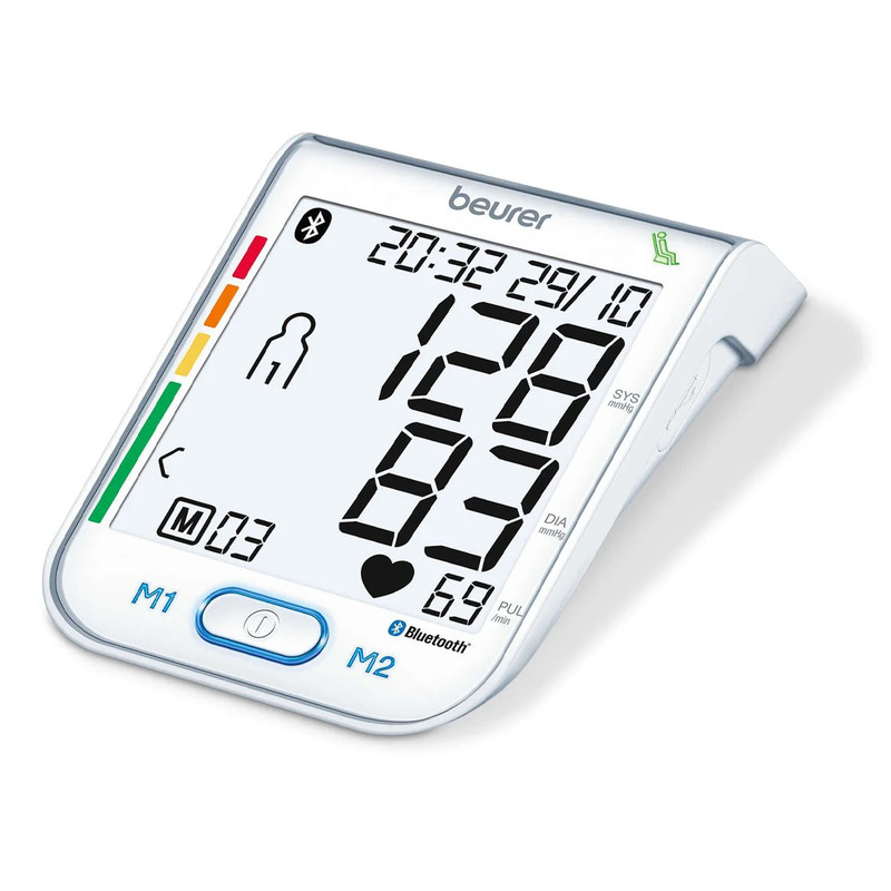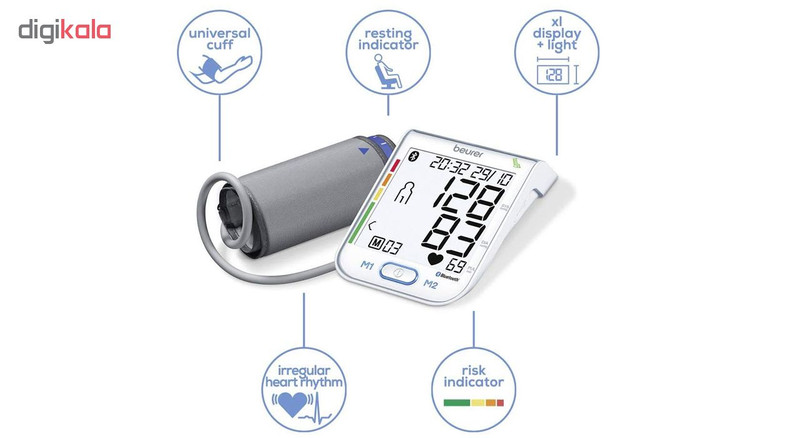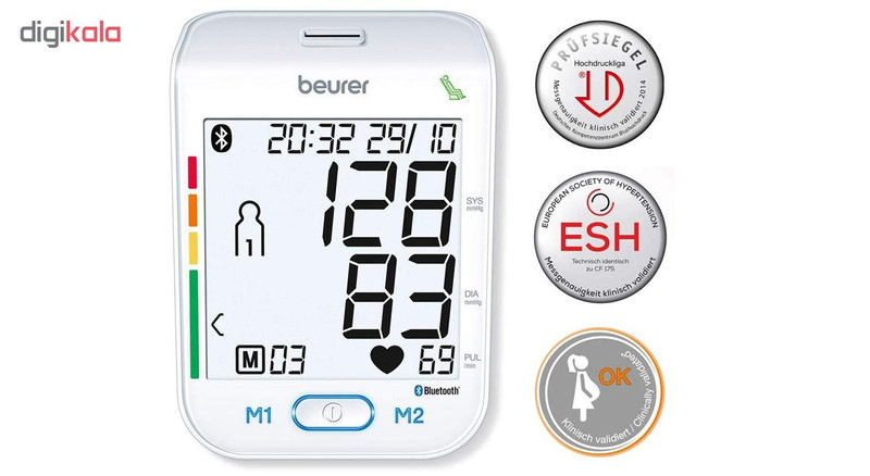 فشارسنج دیجیتالی «بیورر» (Beurer) مدل «BM77» دارای نشان کیفیت انجمن فشار خون آلمان و انجمن فشار خون اروپا است و برای سنجش فشار خون و ضربان قلب از طریق بازو بصورت تمام اتوماتیک طراحی شده است. قابلیت انتقال اطلاعات از طریق اپلیکیشن مدیریت سلامت (Health Manager) برای برنامه ریزی، نظارت و مدیریت وضعیت سلامت در این محصول وجود دارد. این امکان به لطف اتصال بلوتوث انجام میشود. البته میتوانید با استفاده از کابل USB این محصول را به کامپیوتر هم متصل کنید و نظارت دقیقی روی وضعیت سلامتیتان داشته باشید. فشارسنج دیجیتالی BM77 از طریق 4 باتری نیمقلمی تامین می گردد. فشارسنج بازویی مدل BM77 دارای نشانگر حالت استراحت برای اندازه گیری دقیق resting (اختراع ثبت شده EP 1 673 009) با ردهبندی رنگی سازمان بهداشت جهانی WHO و قابلیت تشخیص آریتمی است. این فشار سنج طبی با صفحه نمایش عددی بزرگ با اندازه 94 در 92 میلیمتری با نور پس زمینه سفید است. این نمایشگر به دکمههای لمسی و کلید پاور، 60 جایگاه حافظه برای 2 کاربر و قابلیت نمایش میزان متوسط مقادیر اندازه گیری شده فشارخون مجهز شده است. این محصول مناسب دور بازوی 24 تا 40 سانتیمتر است. فشارسنج بازویی مدل BM77 با نگهدارنده کاف، دارای ساعت و تاریخ و عملکرد خاموشی خودکار و پیغام هشدار اشتباه در عملیات است و به دلیل کیفیت ساخت مطلوب ارزش خرید بالایی دارد.