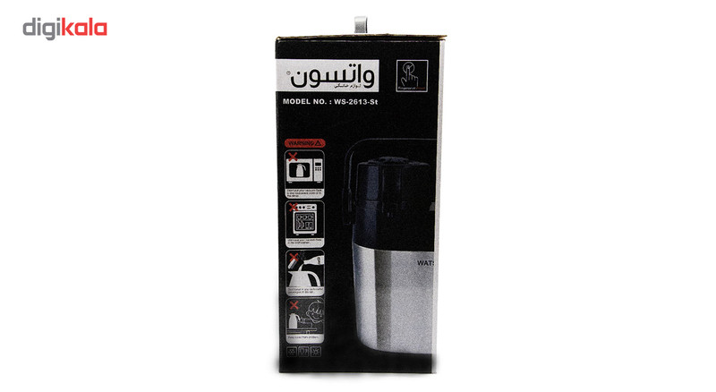 فلاسک بدون شیشهی واتسون یکی از انواع استیل این برند است. این فلاسک (فلاکس) دارای دسته و قسمتهایی در بدنه از جنس پلاستیک بادوام و به رنگ مشکی است. ظاهر این فلاسک ساده و زیباست. برای استفادهی بهتر از این فلاسک بهتر است که قبل از ریخت نوشیدنیهای داغ درون آن را با آب گرم شسته شود و همچنین قبل از ریختن نوشیدنیهای سرد، با آب سرد شسته شود. این کار نیاز به یک پروسهی زمانی پنج دقیقهای دارد و بعد میتوان با طعم خوب، نوشیدنیها را نوشید. بدنهی داخلی استیل در این فلاسک کمک میکند تا مدت زمان بیشتری از نوشیدنی گرم و یا سرد ریخته شده در آن استفاده کرد. چنانچه درپوش آن به خوبی بسته شود، امکان ریزش مایعات از شیر آن وجود نخواهد داشت. برای ریختن مایعات، کافی است تا اهرم موجود روی سری را به آرامی فشار دهید و از نوشیدن لذت ببرید. درب فلاسک به راحتی و با یک چرخش 360 درجه باز و بسته میشود و نیازی به فشار وارد کردن برای محکم شدن درب آن نیست. این فلاسک در سفر و پیکنیک هم میتواند یار خانوادهها باشد.