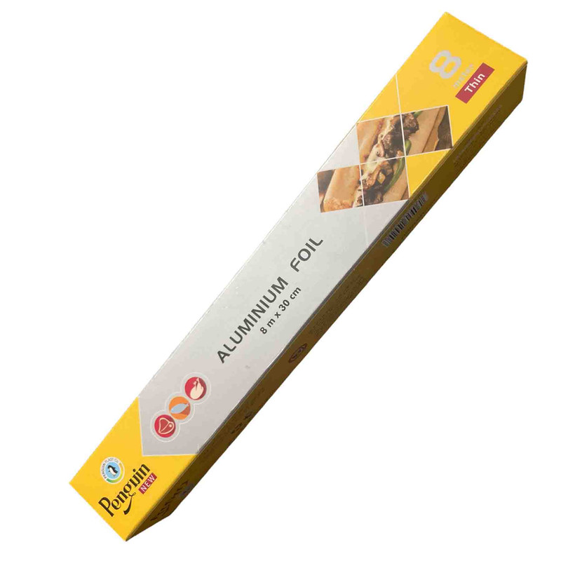 | سایر توضیحات | فویل آلومینیم نازک بسیار باکیفیت از برند پنگوئن طول این فویل 8 متر میباشد و جنس آن نازک هست برای استفاده برای پخت و پز و .. بسیار گاربردی است طول فویل 8 متر و عرض آن 30 سانتی متر میباشد. |