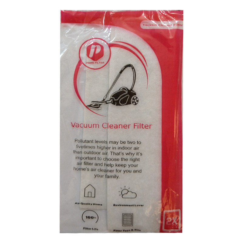 | سایر توضیحات | در هر بسته دو عدد فبلتر در ابعاد 23×6.5 و دیگری 17×9.5 وجود دارد. مناسب برای جاروبرقی پارس خزر 505 (1500W و 1600W) |