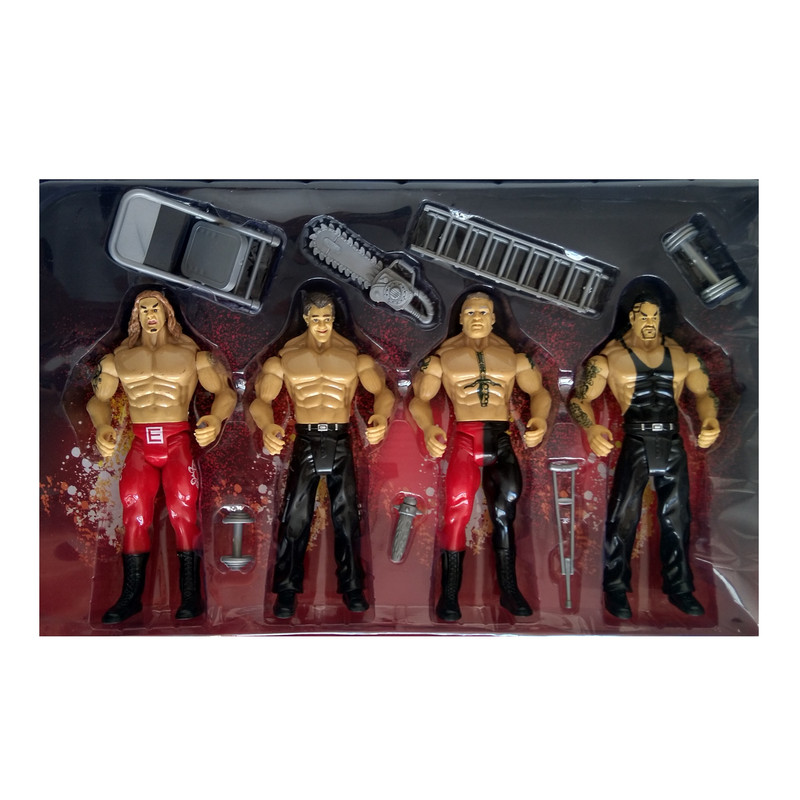 مجموعه چهارعددی قهرمانان کشتی کج به همراه رینگ . که ارتفاع هر فیگور حدود 17 سانتیمتر و ابعاد رینگ 24 در 24 سانتیمتر میباشد . این محصول دارای کیفیت ساخت خوب بوده و بادوام میباشد همچنین با داشتن بسته بندی زیبا مناسب هدیه دادن است .