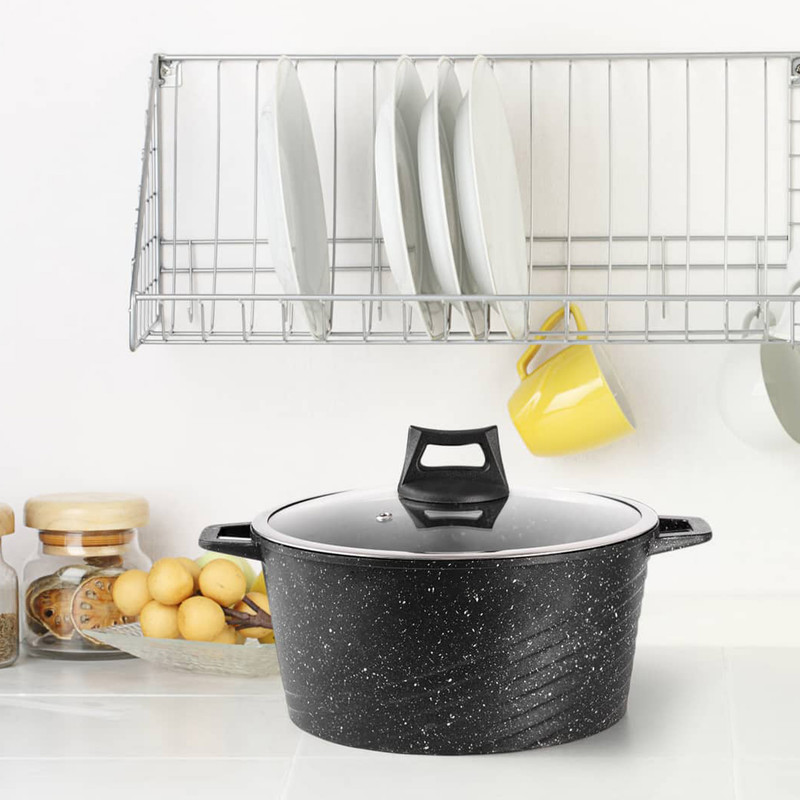 | سایر توضیحات | بیرون محصولات همانند داخل آنها از بهترین و بهداشتی ترین گرانیت چند لایه (دارای استاندارد اروپا) ساخته شده است ، در برابر حرارت بالا و شره کردن مواد غذایی تغییر رنگ نمی دهد و قابلیت استفاده در فر را دارا می باشد، کاملا نچسب بوده و شست و شوی آن آسان است. کف محصولات به گونه ای طراحی و تولید شده اند که حرارت را در کف محصول به طور یکنواخت پخش می شود، دسته ها از جنس بدنه بوده (مزیت استفاده در فر را دارد) و به تنه پرچ نشده اند (رسوب نمیگیرد). |