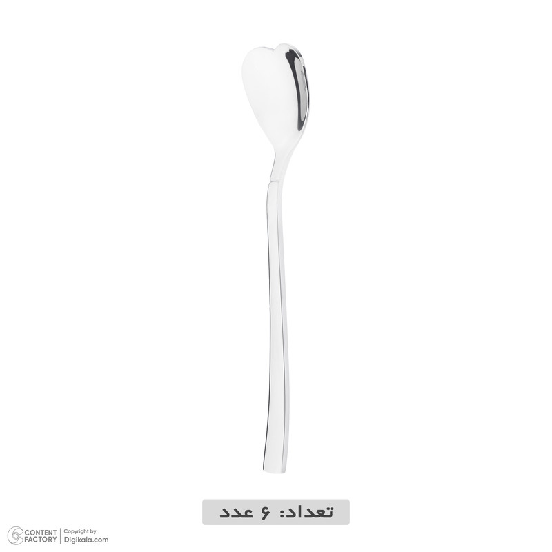 | سایر توضیحات | 6 عدد قاشق مرباخوری به ابعاد 13x3x0.5 سانتی متر و وزن 20 گرم استیل18/10ضدزنگ با ضخامت3/5میلی متر |