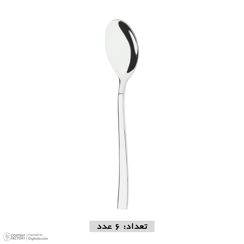 | سایر توضیحات | 6 عدد قاشق مربا خوری به ابعاد 13.5x2.5x0.3سانتی متر و وزن 20 گرم - استیل18/10ضد زنگ با ضخامت 3 میلیمتر |