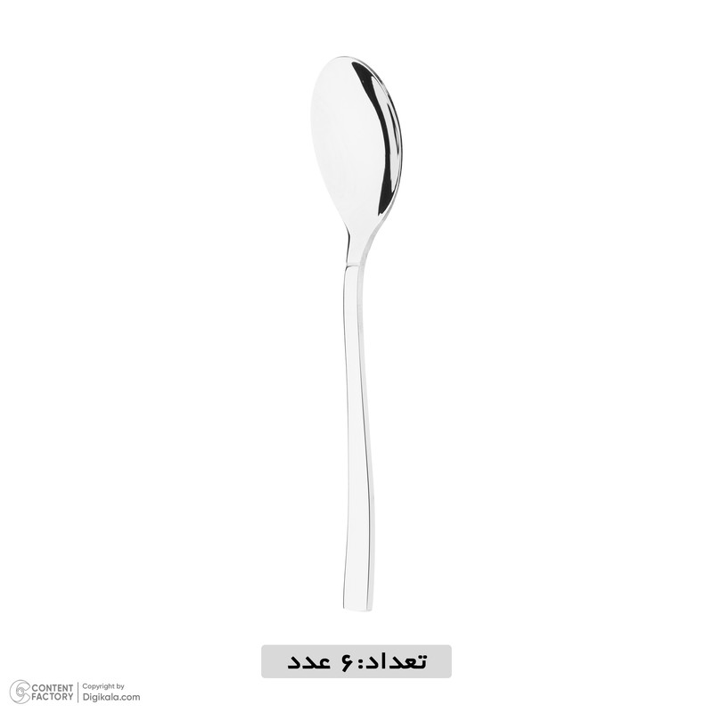 | سایر توضیحات | ۶ عدد قاشق چای خوری به ابعاد ۱۱.۵x۲x۰.۳۵ سانتی متر و وزن ۱۵ گرم استیل۱۸/۱۰ضد زنگ با ضخامت۳/۵میلیمتر |