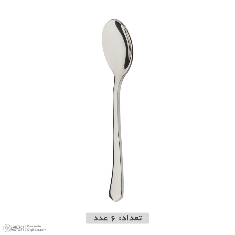 | سایر توضیحات | 6 عدد قاشق چای خوری به ابعاد 11x2x0.3 سانتی متر و وزن 20 گرم - استیل18/10ضد زنگ با ضخامت 3 میلیمتر |