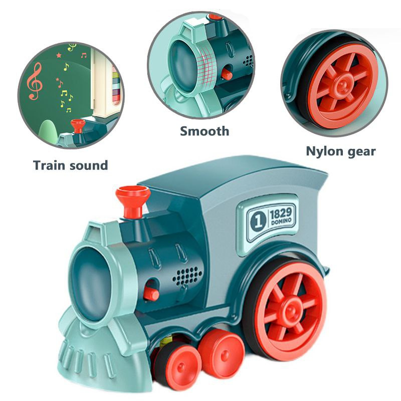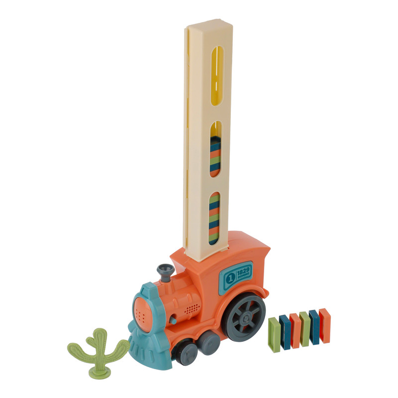 این محصول دارای یک خشاب است که با پرکردن آن با دومینوها که تعداد آن 60 عدد می باشد و قرار گرفتن در پشت قطار و روشن کردن قطار شروع به حرکت و چیدن دومینوها روی سطوح کرده و با چرخواندن دودکش قطار می توانید به مسیر حرکت قطار جهت دهید. همچنین یک درختچه پلاستیکی برای معکوس کردن حرکت دومینوها در آن قرار داده شده است. این قطار به وسیله دو باطری قلمی روشن می شود. همچنین دومینو های موجود قابل استفاده به شکل مجزا هستند.