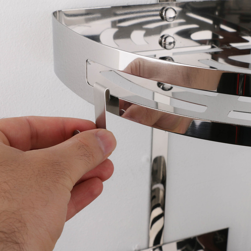 طبقه حمام مدل «KH-3-C» با برند «دلفین» (DOLPHIN) محصولی کاملا ایرانی است. معمولا یکی از مشکلاتی که در محیط های رطوبتی مثل حمام و دستشویی با آن مواجه هستیم زنگ زدگی و تجمع آب زیر و روی لوازم است. طبقه حمامی دلفین با استفاده از متریال استیل ضد زنگ و همچنین مشبک بودن سطح نگهدارنده برای خروج آب این مشکل را رفع نموده است. جای لیف در قسمت بیرونی اجازه گردش هوا و در نتیجه جلوگیری از تجمع باکتری را ممکن ساخته است. ظاهری زیبا ،نصب آسان وفضای زیاد برای قرار دادن شوینده ها و لوازم اصلاح از ویژگی های این محصول است. شستشو و قرار دادن این طبقه کنار دوش به واسطه جنس ضد زنگ آن نظافت لوازم را ساده تر کرده است. این محصول به فورم های 2 طبقه، 3طبقه و در رنگ های کروم و طلا ارایه شده و متریال تمام رنگ ها استیل است.