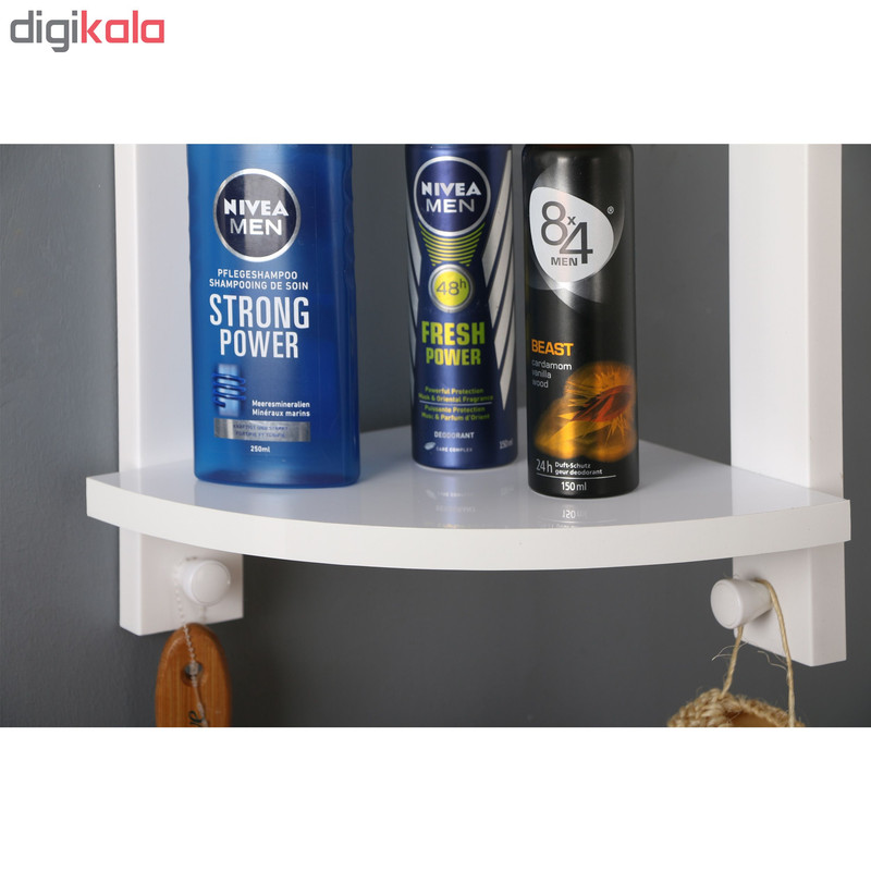 قفسه حمام ((دلفین)) مدل pvc-k3. این محصول از جنس (pvc) ساخته شده که ضد آب ،ضد زنگ ،سبک و بسیار محکم است. این مدل بصورت مونتاژ شده ارسال میشود ودیگر نیازی نیست که آن را سرهم کنید. فقط کافیست با 2 پیچ و رولپلاک (همراه کالا ارسال میشود) و با استفاده از مته 6 الماسه (مته دیوار) آن را نصب نمایید. 2قلاب زیر طبقه برای آویز کردن لیف و دیگر لوازم قرار داده شده است. این کالا به مرور زمان تغییر رنگ نمیدهد و درصورتی که نیاز به جا به جایی داشته باشید به سادگی این امکان فراهم است. 2 گلپیچ نیز برای پوشاندن روی پیچها در بسته بندی قرار دارد. در مجموع اگر به وسیله ای کاربردی با فضای مناسب در حمام خود نیاز دارید پیشنهاد ما به شما این محصول است.