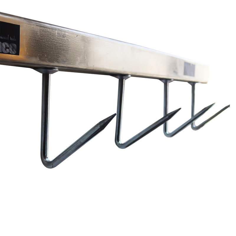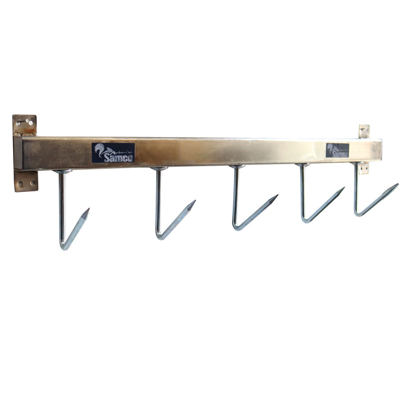 | سایر توضیحات | - قلاب اویز 5 شاخ قصابی سامکو - طول : 1 متر - تعداد شاخه ها : 5 شاخ - دارای پایه های فلزی با قابلیت نصب بر روی دیوار - مناسب قصابی و کشتارگاه برای اویزان کردن شقه گوشت گاو و گوسفند - فاصله شاخه ها 20 سانتیمتر - جنس فلزی مستحکم |