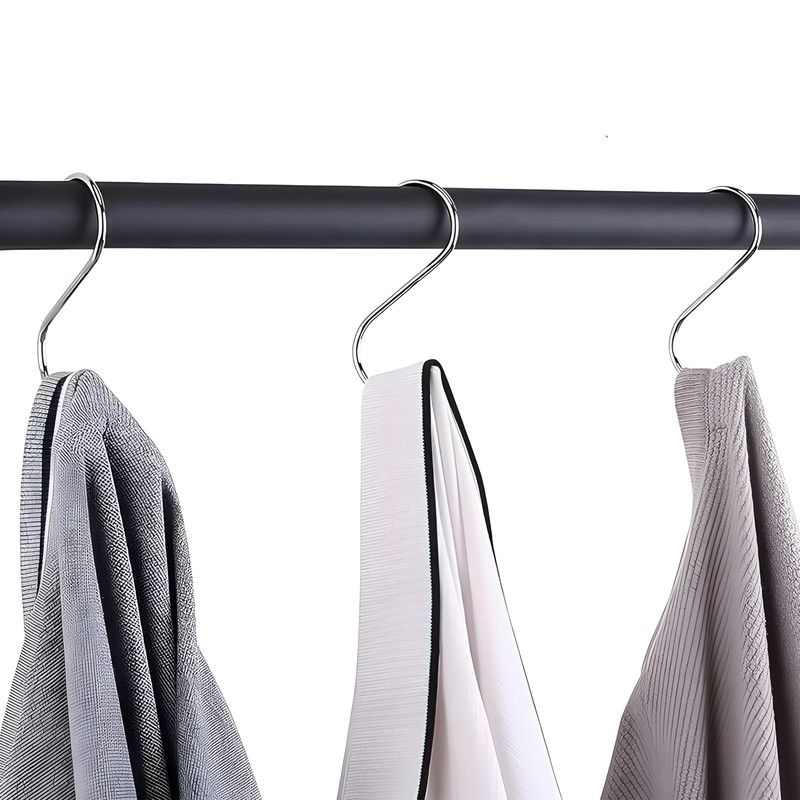 این قلاب اس آویز از جنس استیل ساخته شده است. این آویز بسیار با کیفیت و مقاوم بوده و مناسب برای آویز لیوان ویا دستگیره و حوله وهمچنین لیف حمام استفاده میشود .