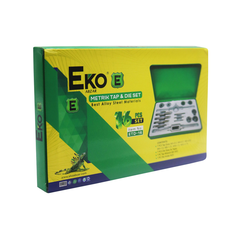 جعبه قلاویز و حدیده 16 پارچه اکو EKO ETD-16 یک ابزار ضروری برای هر کارگاه یا کارخانه است، قلَاویز و حَدیده ابزاری برای تراش دندههای پیچ بر روی موادی مانند فلز، چوب و پلاستیک است.این مجموعه با کیفیت بالا، تنوع بالا و قیمت مناسب، انتخابی ایدهآل برای انجام عملیات قلاویزکاری و حدیدهکاری است.