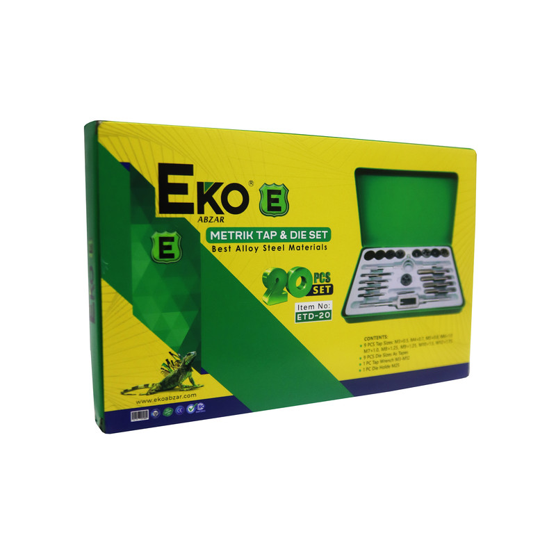 جعبه قلاویز و حدیده 20 پارچه اکو EKO ETD-20 یک ابزار ضروری برای هر کارگاه یا کارخانه است، قلَاویز و حَدیده ابزاری برای تراش دندههای پیچ بر روی موادی مانند فلز، چوب و پلاستیک است.این مجموعه با کیفیت بالا، تنوع بالا و قیمت مناسب، انتخابی ایدهآل برای انجام عملیات قلاویزکاری و حدیدهکاری است.
