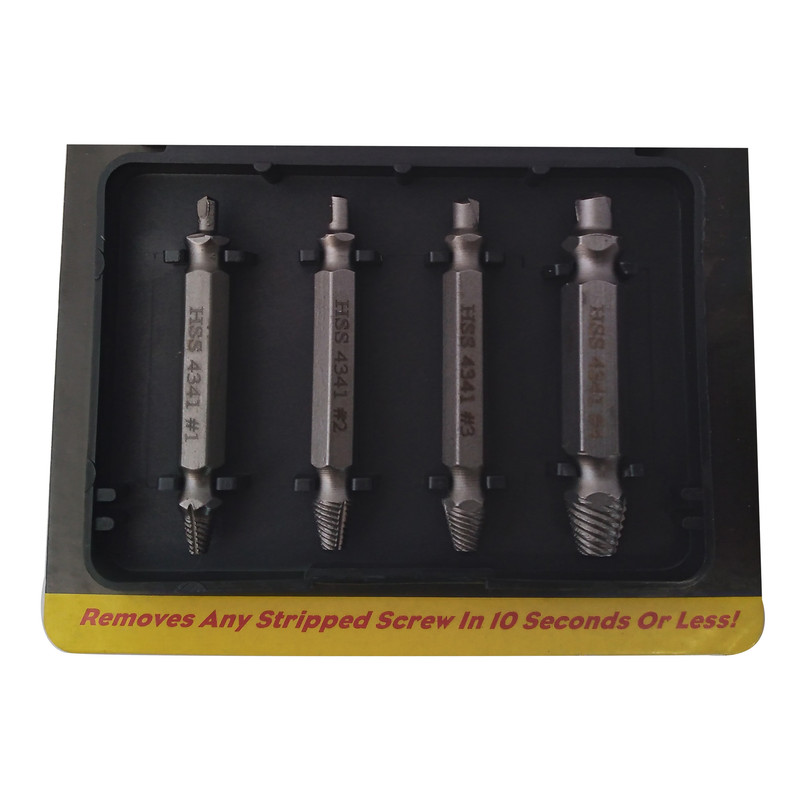 | توضیحات مجموعه | ست چپ گرد سر دریلی سایز 1--2-3-4 باز کردن انواع پیچ هرز شده و بریده استفاده راحت و آسان در دو حرکت در 4 سایز مختلف برای سایز های مختلف |