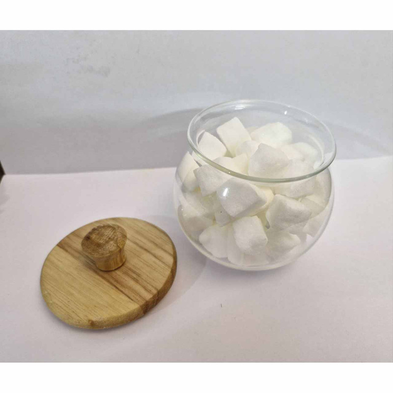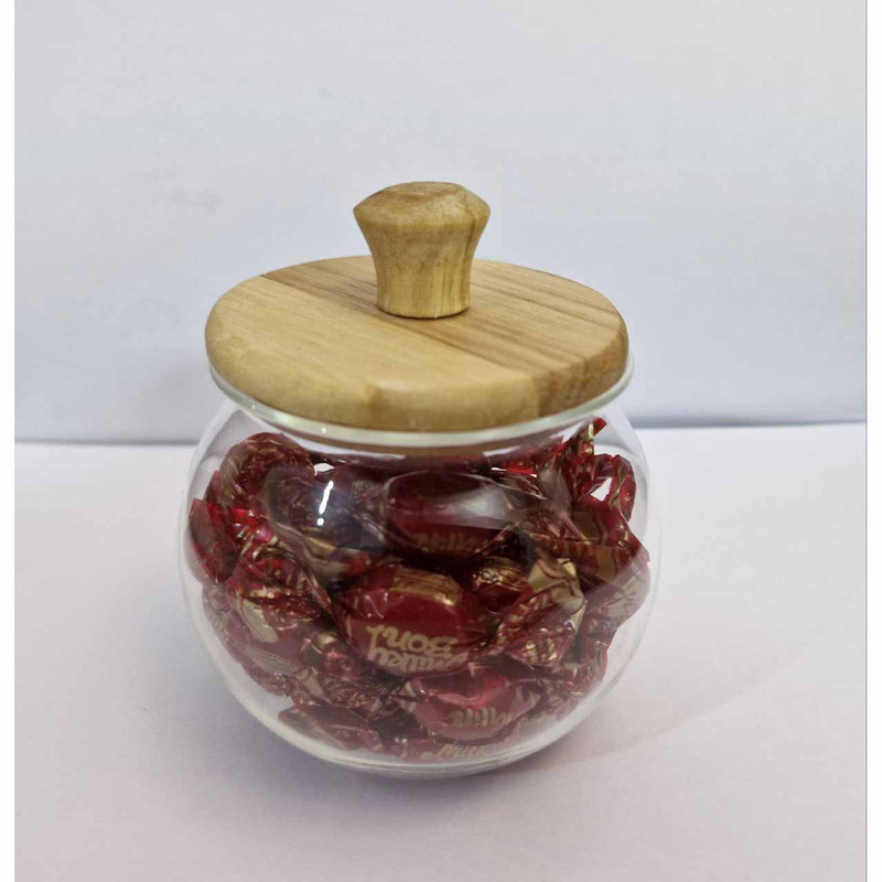 ظرف قند و شکلات خوریه شکیل و نقلی که شامل یک درب چوبی و بخش زیرین که از جنس شیشه میباشد که جلوه ای زیبا برای مهمانی ها دارد. درب چوبی آن زیباییه دوچندانی را به آن داده است
