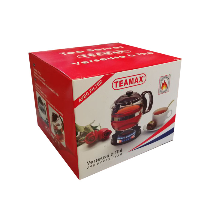 قوری عضوی جدا نشدنی از هر آشپزخانه است.قوری teamax دارای حجم 1000 میلی لیتر و شیشه ی پیرکس ساخت اروپا بسیار باکیفیت(شفاف) و شعله مستقیم است که مناسب کتری٬چایساز٬سماور و غیره میباشد.در جلوی در محصول فیلتر برای جلوگیری از عبور تفاله ها وجود دارد. قطر قسمت بر آمده ی کف (قسمتی که روی صفحه چایساز)قرار میگیرد 9.5 سانتی متر٬ارتفاع شیشه ی قوری حدود 9.5 سانتی متر است و قطر دهانه قوری 11 سانتی متر است.در و دسته ساخته شده از پلاستیک با کیفیت بهداشتی است.