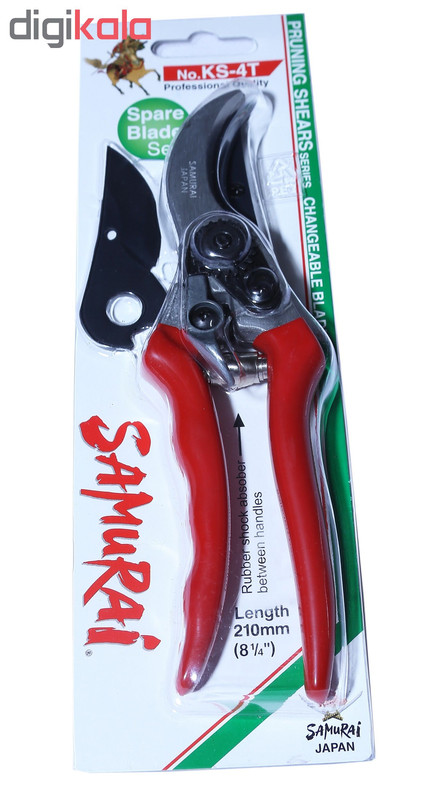 قیچی باغبانی سامورایی محصول کشور ژاپن می باشد و برای کارهای باغبانی مانند بریدن شاخهها، ساقهها، برگها و ... مورد استفاده قرار میگیرد. از این قیچی میتوان برای چیدن میوهها نیز استفاده کرد. این محصول بهخوبی طراحی شده است و بهشکلی مناسب نیروی کاربر را به تیغههای تیز فلزی که دارد انتقال میدهد. این تیغهها مقاومت بالایی دارند و بهراحتی دچار خوردگی نمیشوند. ولی مدل KS-4T دارای تیغه یدک می باشد که طول عمر قیچی را 2 برابر افزایش می دهد. دستههای قیچی نیز طراحی مناسبی دارند. ارگونومی این دستهها بهشکلی است که کاربر میتواند بهراحتی دستان و انگشتان خود را روی آنها قرار دهد و فشار مناسب را وارد کند. از دیگر مزایای این محصول میتوان به وجود روکش روی دستههای آن اشاره کرد. برای جلوگیری از باز شدن دهانهی قیچی در حین حمل میتوانید از قفل کوچکی که روی قیچی قرار دارد استفاده کنید.