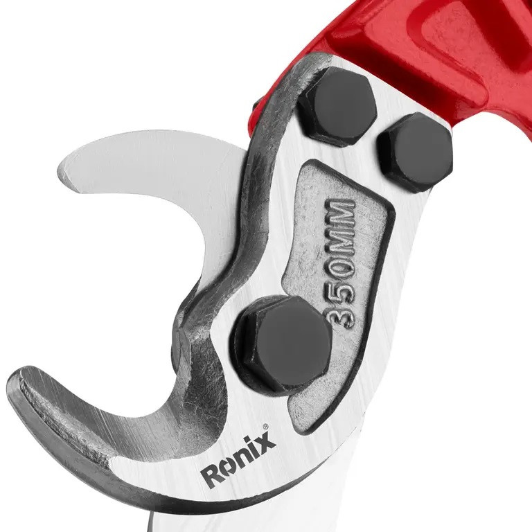 قیچی کابل بر 14 اینچ رونیکس مدل RH-1843 سایز 350 میلیمتری مجهز به تیغه هایی از فولاد آلیاژی حرارت دیده جهت برش سریع و یکنواخت، بدنه فولاد کربنی آلیاژی و مقاوم شده و همچنین جنس دسته ها از PVC ضد تعریق است. همچنین لازم به ذکر است این قیچی کابل بر مناسب برش کابل تا مقطع 350 میلی متر مربع می باشد. همچنین قابلیت برش انواع کابل های مسی، آلومینیومی و mcm با توجه به ظرفیت برش برای هر سایز از خصوصیات این کالاست.