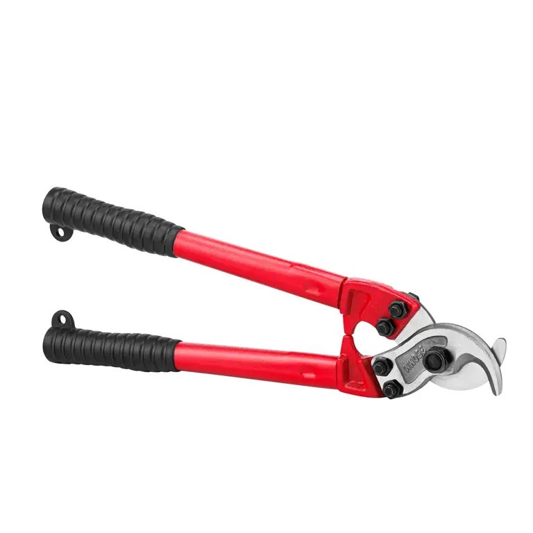 سایر توضیحات قیچی کابل بر سایز 14 اینچ - 350 میلی متر، قابلیت برش کابل مسی 70 میلیمتری مربع و کابل آلومینیومی 100 میلیمتر مربع، ظرفیت برش حداکثر 350 میلی متر مربع. بدنه از جنس فولاد آلیاژی حرارت دیده (Q235)، دسته با پوشش لاستیکی و تیغه از فولاد کربنی آلیاژی (65MN).