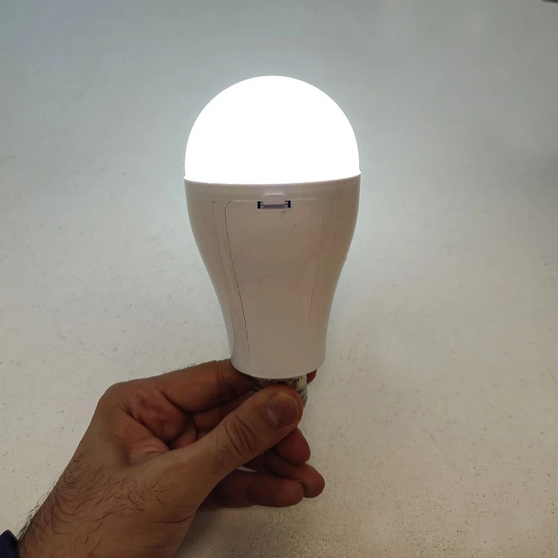 لامپ شارژی دوحالته که به سرپیچ معمولی E27 وصل می شود و در حالت عادی یعنی وصل بودن برق شهری با ولتاژ 220 ولت و توان حدود 18 وات روشنایی دارد اما با قطع شدن برق از سمت اداره برق به صورت اتوماتیک بر روی حالت دوم می رود و توسط باتری های موجود متصل به لامپ روشن می شود. در واقع این لامپ دارای یک چیپ دو حالته اتوماتیک می باشد که هم ورودی 220 را داراست و هم ورودی باتری لیتیوم یون 2000 میلی آمپر که زمانی که لامپ با برق شهری روشن می باشد باتری ها شارژ می شوند و در زمان قطعی برق به صورت لحظه ای باتری ها وارد مدار شده و لامپ با توان کمتر روشن میشود. همچنین با دارا بودن 2 باتری با ظرفیت 2000 میلی آمپر تا حدودا 3 الی 4 ساعت روشنایی اضطراری در زمان قطعی برق برای شما دارد. اما نکته مهم این است که حالت اضطراری این لامپ، با خاموش کردن بوسیله کلید فعال نمیشود (به استثناء کلیدهای چراغ دار که در صورت نیاز میتوانید چراغ کلید را حذف نمایید) و فقط با قطع شدن برق شهری فعال میشود و حتی با قطع کردن فیوز فعال نمی شود و فقط در صورتیکه برق شهر قطع شود کار میکند.طول عمر مفید لامپ حدود ۸۰۰۰ ساعت است که استفاده طولانیمدت و کمهزینه را تضمین میکند. این لامپ شارژی برای استفاده در منازل، دفاتر، فروشگاهها به دلیل قابلیت شارژ و روشنایی اضطراری، نگرانی بابت قطعی ناگهانی برق را کاملاً برطرف میکند. رده مصرف انرژی A، باعث صرفهجویی در مصرف برق و کاهش هزینههای انرژی میشود. ویژگی منحصر به فرد این محصول، وجود دو باتری لیتیومی داخلی قابل شارژ است که به لامپ امکان روشن شدن خودکار در هنگام قطع برق را میدهد.