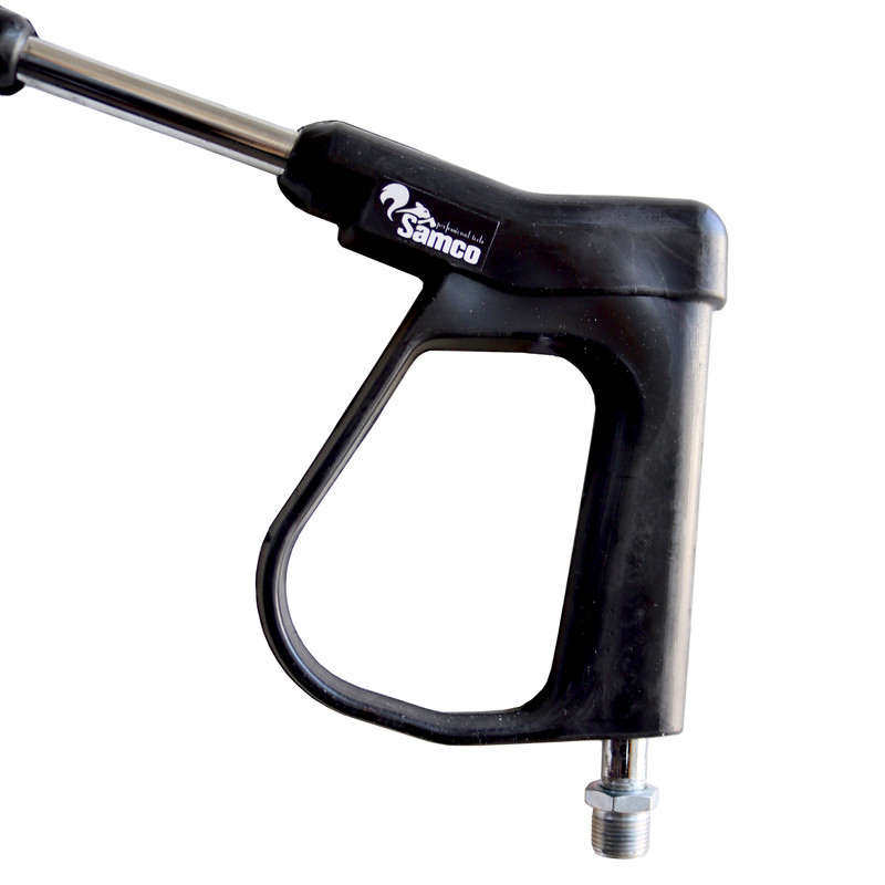 در دستگاههای کارواش که در سالیان اخیر به طور گسترده ای مورد استفاده عموم قرار می گیرد اجزا و قطعات با کارکرد مداوم امکان آسیب دیدن دارند که با نقص کارکرد هر قطعه از این مجموعه ، کارکرد کل سیستم مختل می شود .یکی از قسمتهایی که بسیار امکان آسیب پذیری و خرابی در آن وجود دارد تفنگی و نازل دستگاه است که با تهیه آن می توانید دستگاهی که کارکردی ندارد را با هزینه مختصری به کار بیاندازید .لنس و تفنگی کارواش صنعتی برند سامکو ساخت کشور ایران با داخل رزوه سایز 3/8 اینچی یا مناسب برای مهره های مهره 15 میلیمتری برای شلنگ کارواش هایی با این رزوه قابل استفاده است . طول کل آن 111 سانتیمتر است.... لنس یا نازل فلزی که قسمت میانی ان پلاستیکی می باشد برای نگهداری راحت تر کاربر متصل به هم است ( جدا نمی شود ) و طولی برابر با 99 سانتیمتر دارد. طول تفنگی که از جنس پلاستیک فشرده شده درجه یک به کار رفته 12 سانتیمتر متصل به لنس بوده( جدا نمی شود ) که جمع کلی ان می شود 111 سانتیمتر طول لنس و تفنگی است...