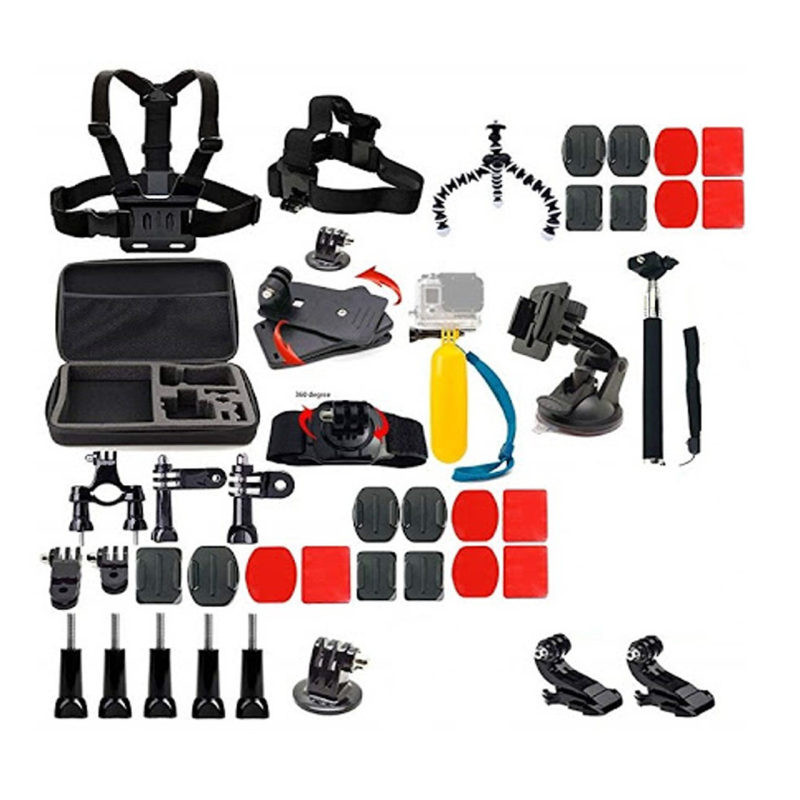 | ویژگی های فنی | این پکیج شامل 51 تکه لوازم جانبی دوربین گوپرو می باشد: کار مانت 1 عدد دستگیره شناوری 1 عدد هد بند 1 عدد مچ بند 1 عدد سینه بند 1 عدد مونوپاد 1 عدد گیره کلیپسی 1 عدد گیره کلاهی 1 عدد سه پایه رو میزی 1 عدد و..... مدل پروفشنال -محافظ صفحه نمایش و لنز گوپرو هیرو 10-9 |