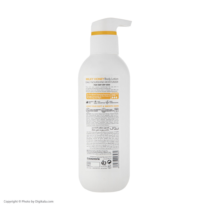 | حاوی | شی باتر، موم زنبور عسل، پروتئین هیدرولیز شده شیر |