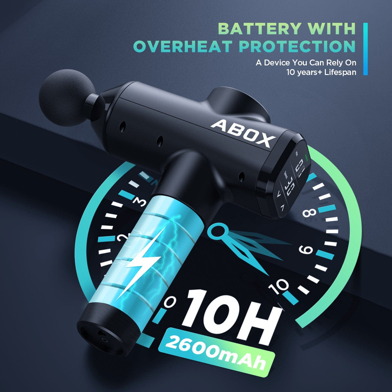 تفنگ ماساژ اباکس 2021 ABOX (6سری)، یک نوع ماساژور از نوع کوبشی و ساخت کشور آمریکاست. این ماساژور مناسب استفاده خانمها و آقایان می باشد و برای تمام قسمت های بدن مورد استفاده قرار می گیرد. قدرت موتور این ماساژور 3200 دور در دقیقه می باشد. ظرفیت باتری این ماساژور 2600 میلی آمپر است که با توجه به این ظرفیت این ماساژور در صورت استفاده مداوم بین 6 تا 10 ساعت قابل استفاده می باشد. گرفتن ماساژ همیشه می تواند حس خوب تندرستی و نشاط را به شما القا کند. بعد از تمرینات قدرتی و استقامتی زمانی که عضلات یک ورزشکار اسید لاکتیک جمع می کنند، می توان با استفاده از دستگاه تفنگی ماساژ اباکس حس برگشت دوباره به اوج قدرت و انعطاف عضلانی را تجربه کرد. اسپاسم و دردهای عضلانی مزمن، دردهای ناشی از دوران نقاهت و سرماخوردگی یا حتی دوران نقاهت ناشی از دردهای بدنی پاندمی کوید 19 کرونا را می توان با ماساژور گان با فرکانس کوبش بالا رفع کرد و سلامت را دوباره تجربه کرد. زمانی که ماهیچه بیش از حد فعالیت دارد، تجمع مواد زاید از جمله اسید لاکتیک می تواند باعث درد، گرفتگی و حتی اسپاسم عضلات شود. تفنگ ماساژ اباکس 2021 ABOX یکی از حرفه ای ترین ماساژورهای دستی است که با هدف رفع اسپاسم و گرفتگی های عضلانی به بازار این محصولات وارد شده است. شکل ظاهری این دستگاه شبیه به تفنگ است و سری توپ شکل آن با اعمال فشار، لرزش و ضربات کوبه ای با شدت نسبتا بالا باعث دسترسی عمیق تر به بافت و عضلات بدن شده و تمام گره‌ ها و تنش‌ های عضلانی را از بین می ‌برد. تفنگ های ماساژ اباکس 2021 ABOX به راحتی قابل حمل هستند و در هر مکانی از جمله مراکز ورزشی، فیزیوتراپی و مراکز آب درمانی می‌توان از آن ها استفاده کرد. تفنگ ماساژور مدل‌ های مختلفی دارد که از جمله آن‌ ها می ‌توان به تفنگ ماساژ اباکس 2021 ABOX اشاره کرد.