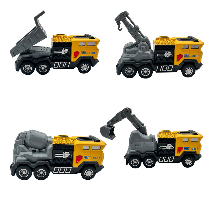 اسباب بازی ماشین راه سازی در 3 رنگ مختلف و بسته 4 عددی به فروش می رسد. این ماشین ها در 4 طرح مختلف ارائه شده که به صورت عقبکش کار می کنند. کلگی ماشین ها از جنس فلز و بدنه آن ها پلاستیکی نشکن می باشند. بسته 4 عددی ماشین راه سازی فاقد جعبه می باشد.