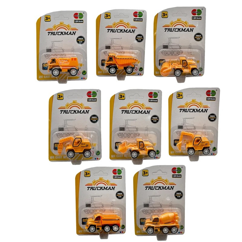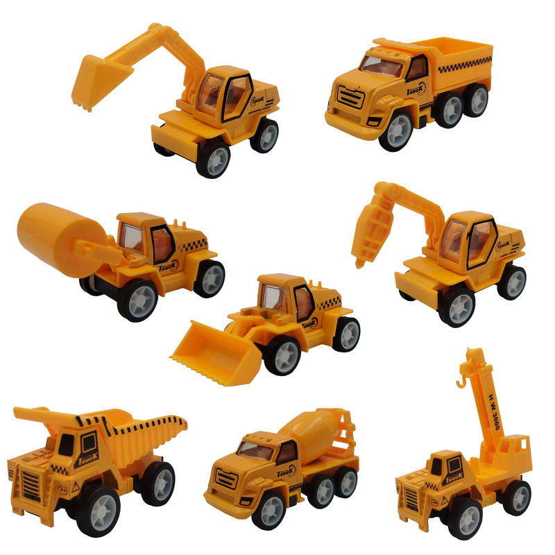 اسباب بازی ماشین راهسازی بسته 8 عددی ساخت چین می باشد. این ماشین های راهسازی دارای سر فلزی و بدنه پلاستیکی هستند که به صورت عقب کش کار می کنند. این مجموعه 8 عددی شامل هر ماشین دارای بسته بندی جدا می باشند.