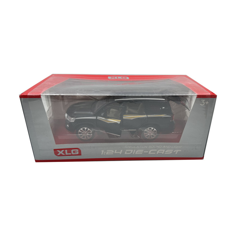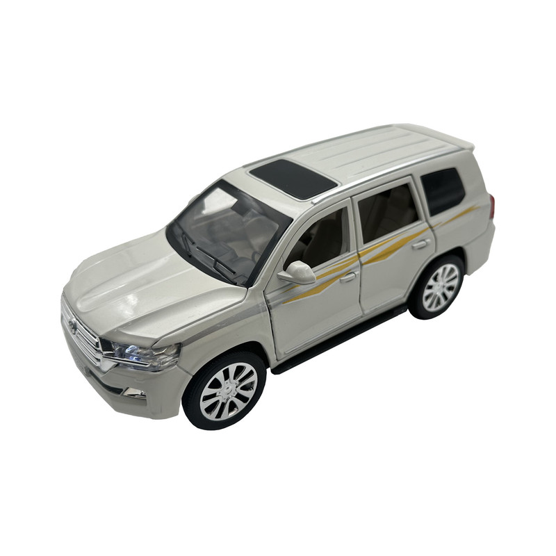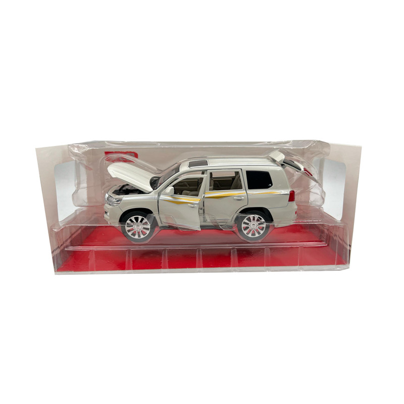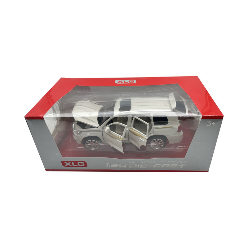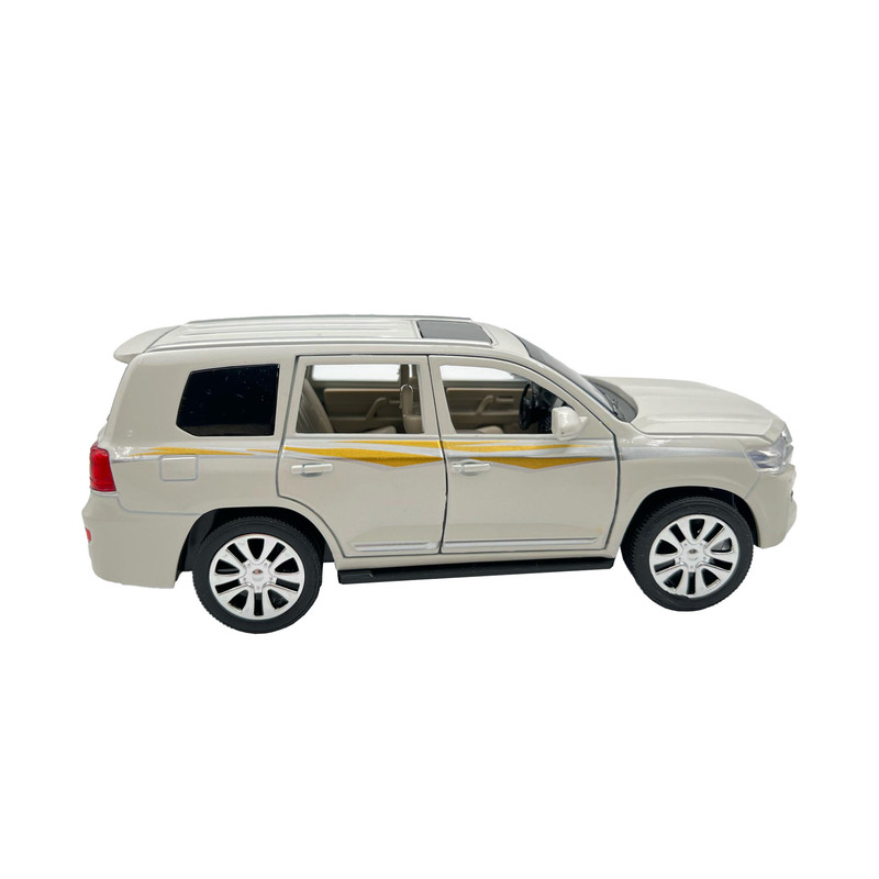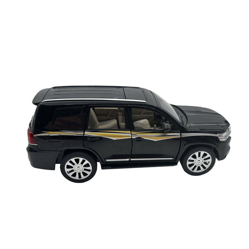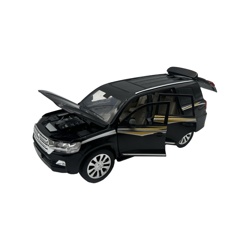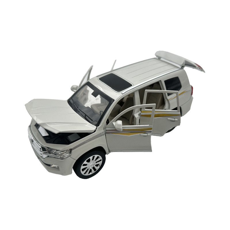 ماشین بازی طرح تویوتا لندکروز سایز بزرگ (1:24) که طول ماشین 20 سانتی متر است از جنس فلز درجه یک ساخته شده است. این ماشین دارای 4 درب در بغل و درب کاپوت و صندوق با قابلیت باز و بسته شدن دارد. ماشین لندکروز به صورت عقبکش کار کرده و همچنین دارای صدای استارت ماشین بوده و همچنین چراغ های جلو روشن می شود. این ماشین فلزی دارای جزئیات ساخت مشابه ماشین واقعی دارد. قابل ذکر است این ماشین لندکروز دارای جعبه بسیار لوکس کادویی عرضه می شود.