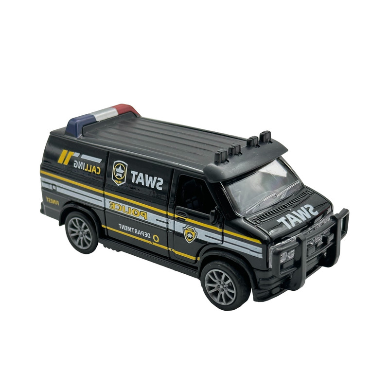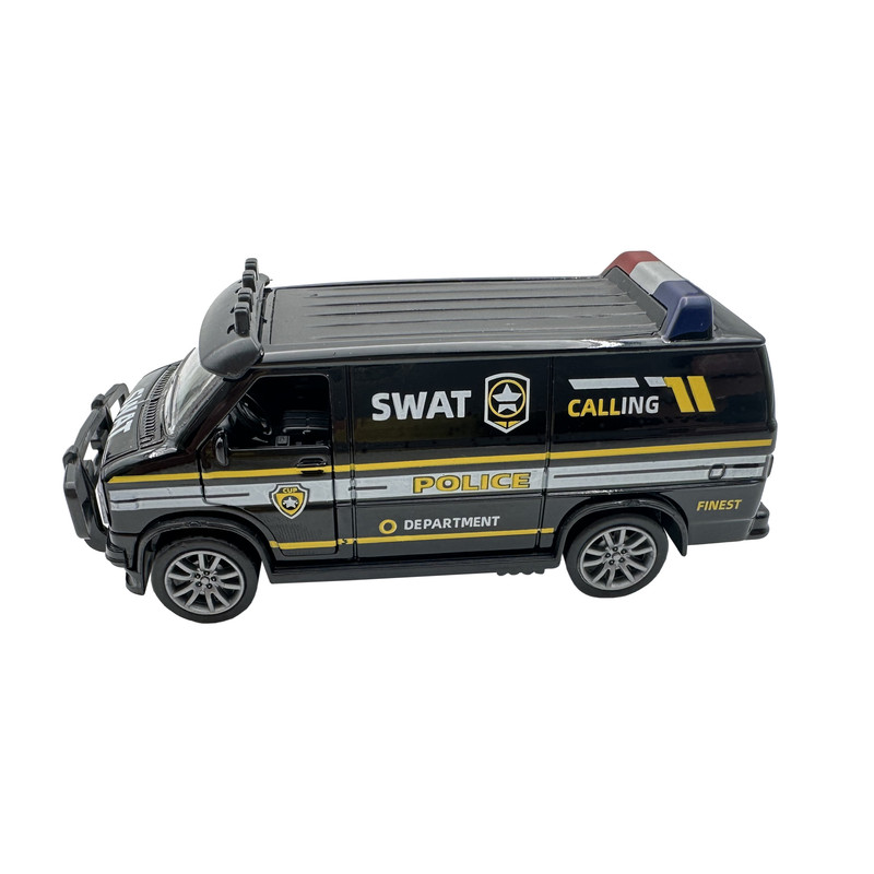 اسباب بازی ماشین فلزی پلیس مدل SWAT174 یک ماشین بازی از جنس فلز می باشد. این اسباب بازی ساخت چین بوده و به صورت عقبکش کار می کند. همچنین ماشین پلیس ون قابلیت باز و بسته شدن 2 درب جلو و درب عقب ون می باشد.