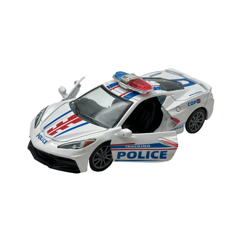 اسباب بازی ماشین پلیس فلزی مدل K164A10 از جنس فلز بوده و به صورت عقبکش کار می کند. این ماشین پلیس فلزی ساخت چین می باشد که 2 درب جلو آن قابلیت باز و بسته شدن دارد.