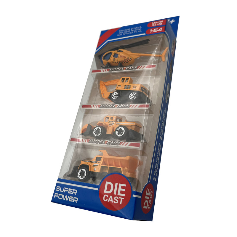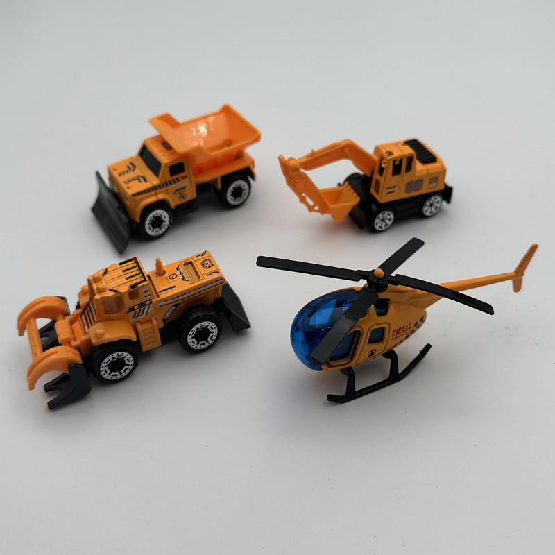 ست راهسازی فلزی بسته 4 عددی حاوی 1 عدد هلی کوپتر و 3 مدل ماشین راهسازی مختلف می باشد. این ست راهسازی 4 عددی دارای حرکت عادی بر روی زمین می باشد که ساخت کشور چین است.